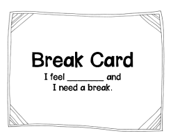 While in an educational setting, many students have difficulty sitting through an entire lesson. This is especially true for students who have Autism. For this reason, it is important that the teacher provides the student with the opportunity to take breaks when they are needed. Breaks should not be taken every few minutes or simply because the child is bored with what they are learning, but when they are feeling overwhelmed, confused, angry, or upset. "Break cards" can be given to those students who require breaks, but should only be used after the student expresses to the teacher the reason behind needing a break. "Because the individual may need to access the card in other environments, consider creating a portable card system" that the student can carry with them when they leave your classroom (HANDS in Autism).